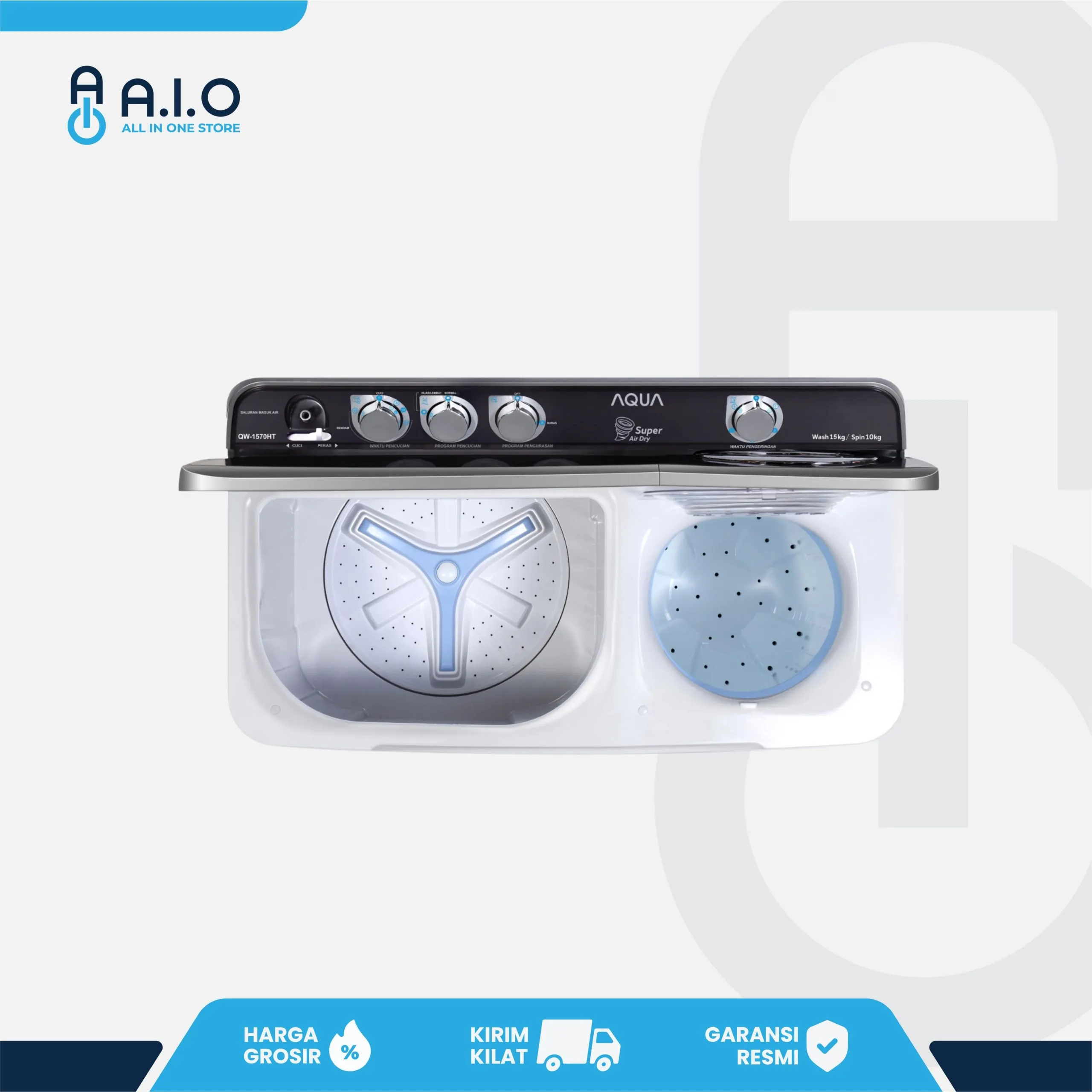 AQUA – MESIN CUCI 2 TABUNG 15 KG – QW 1570HT