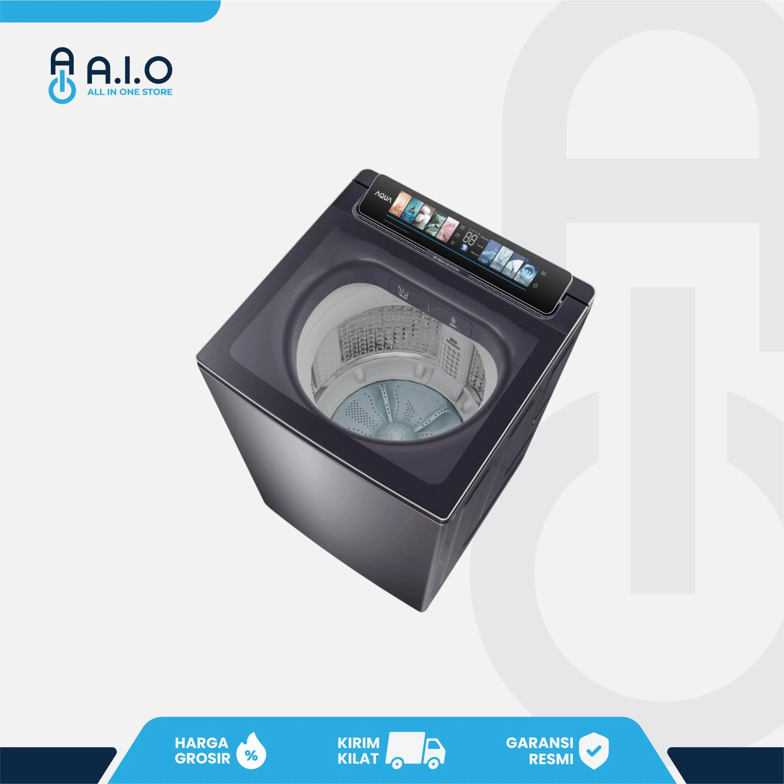 | Tipe Produk | AQUA – MESIN CUCI TOP LOADING 12 KG – AWM12 BSR1L9(BU) |